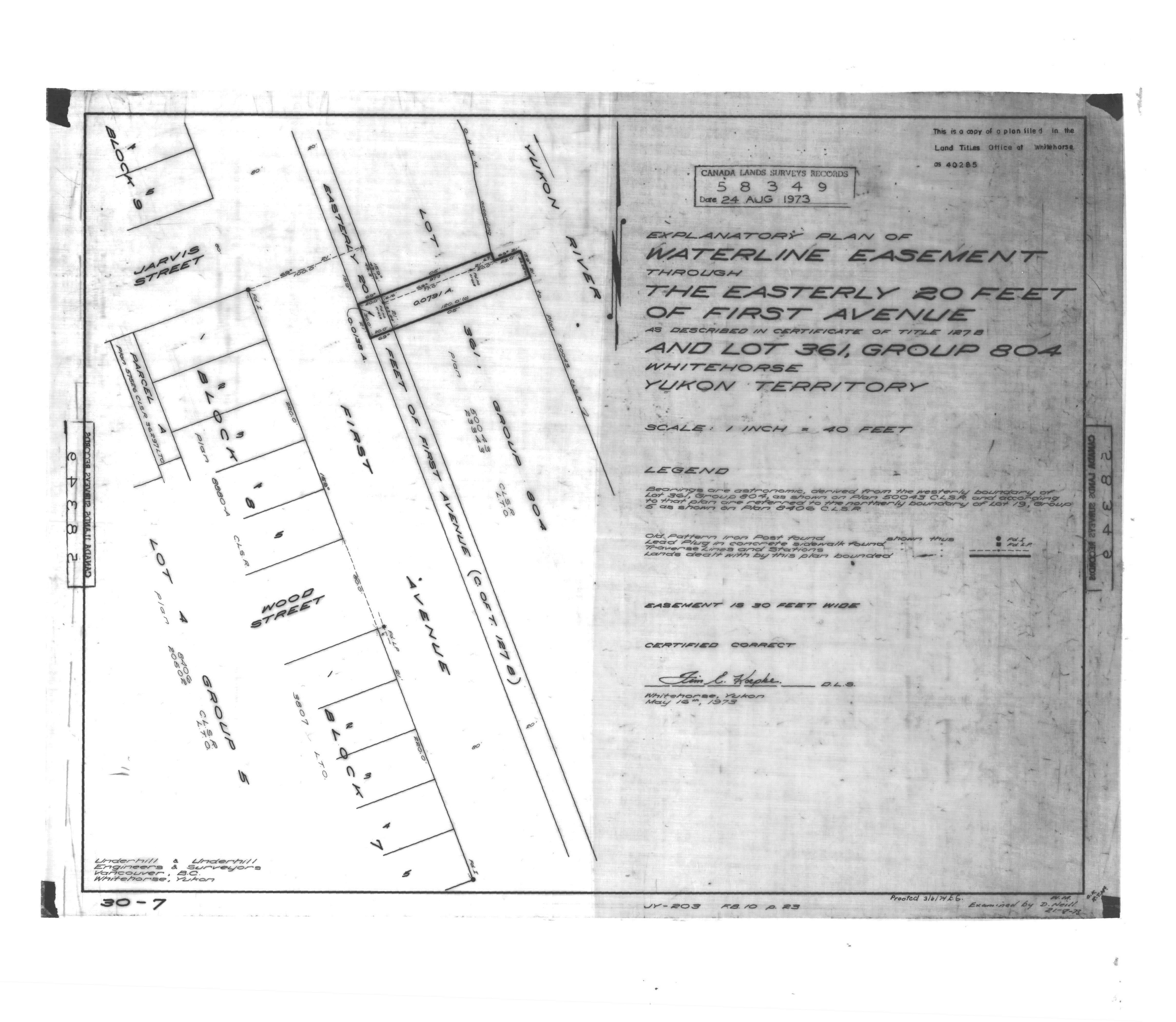 WATERLINE EASEMENT THROUGH THE EASTERLY 20 FEET OF FIRST AVENUE AND LOT 361, GROUP 804, WHITEHORSE (eng; CAN)