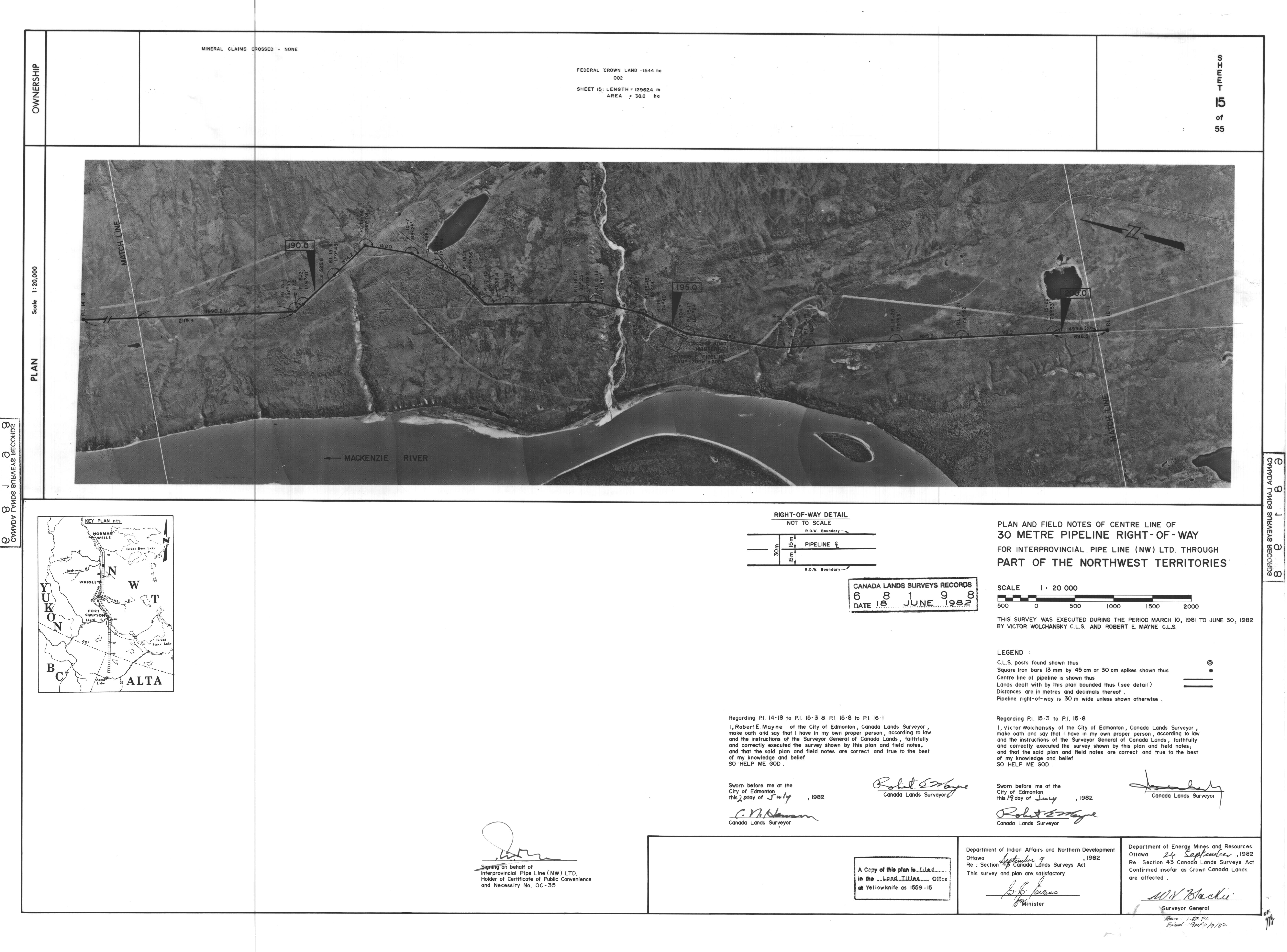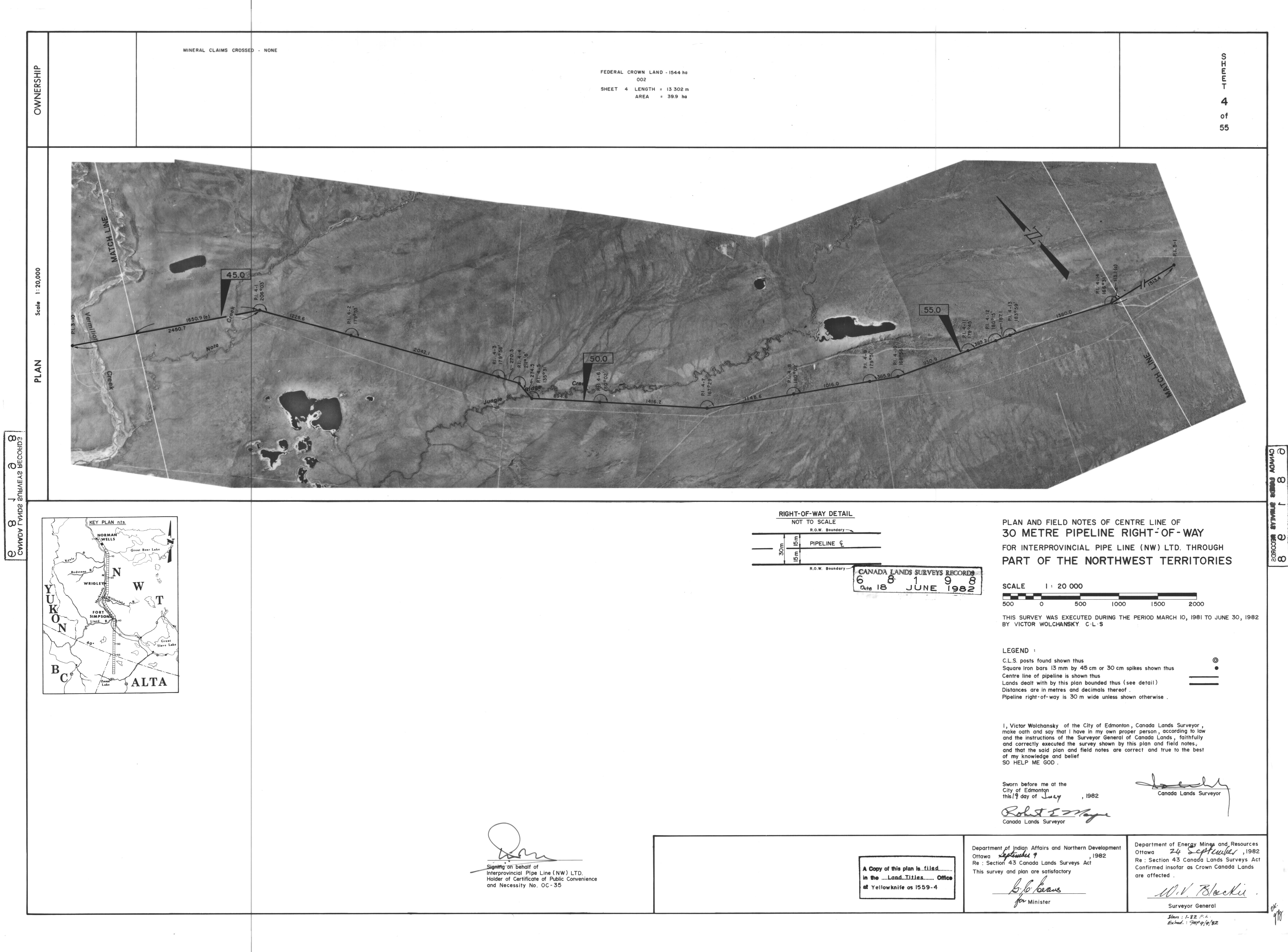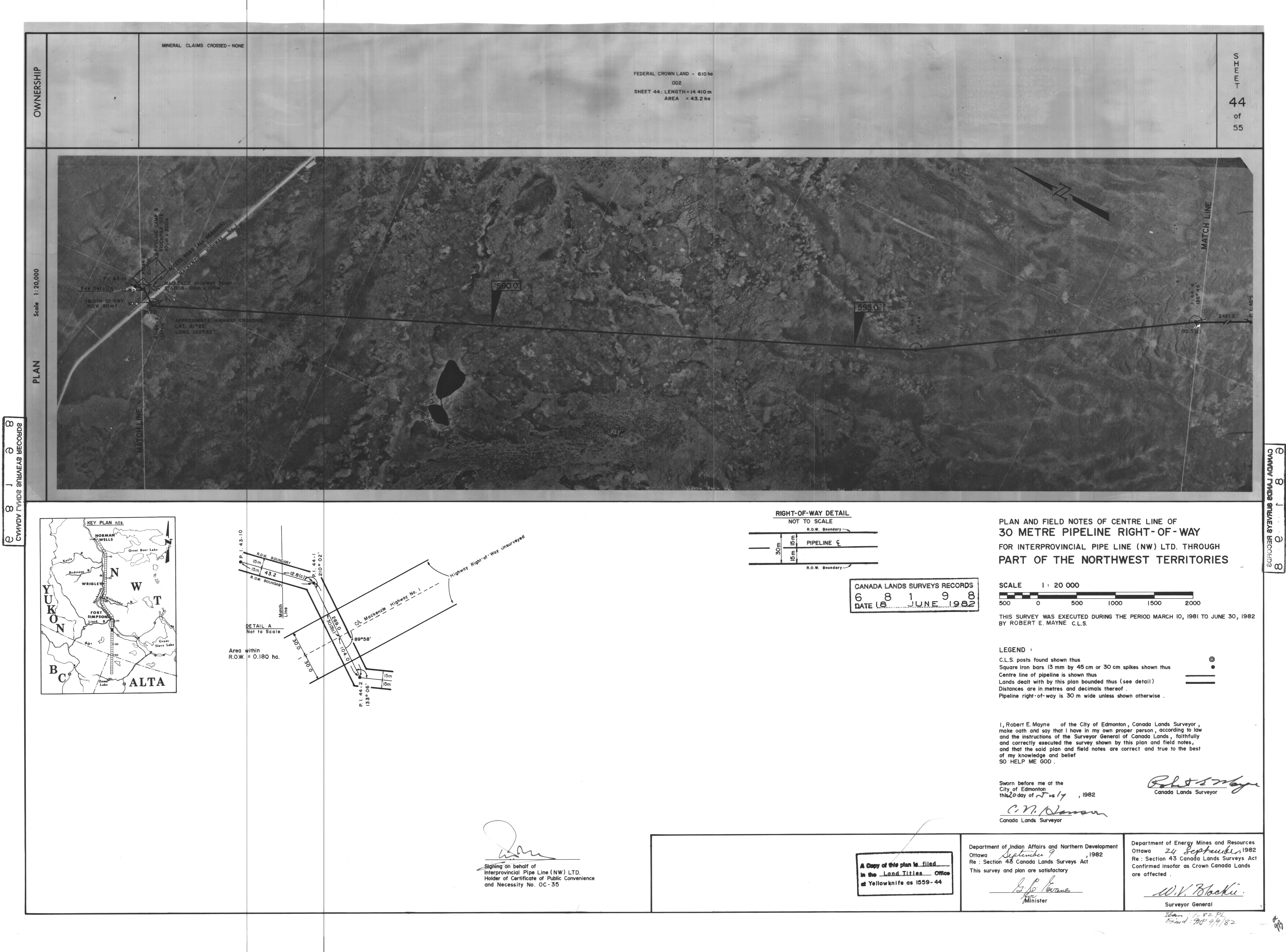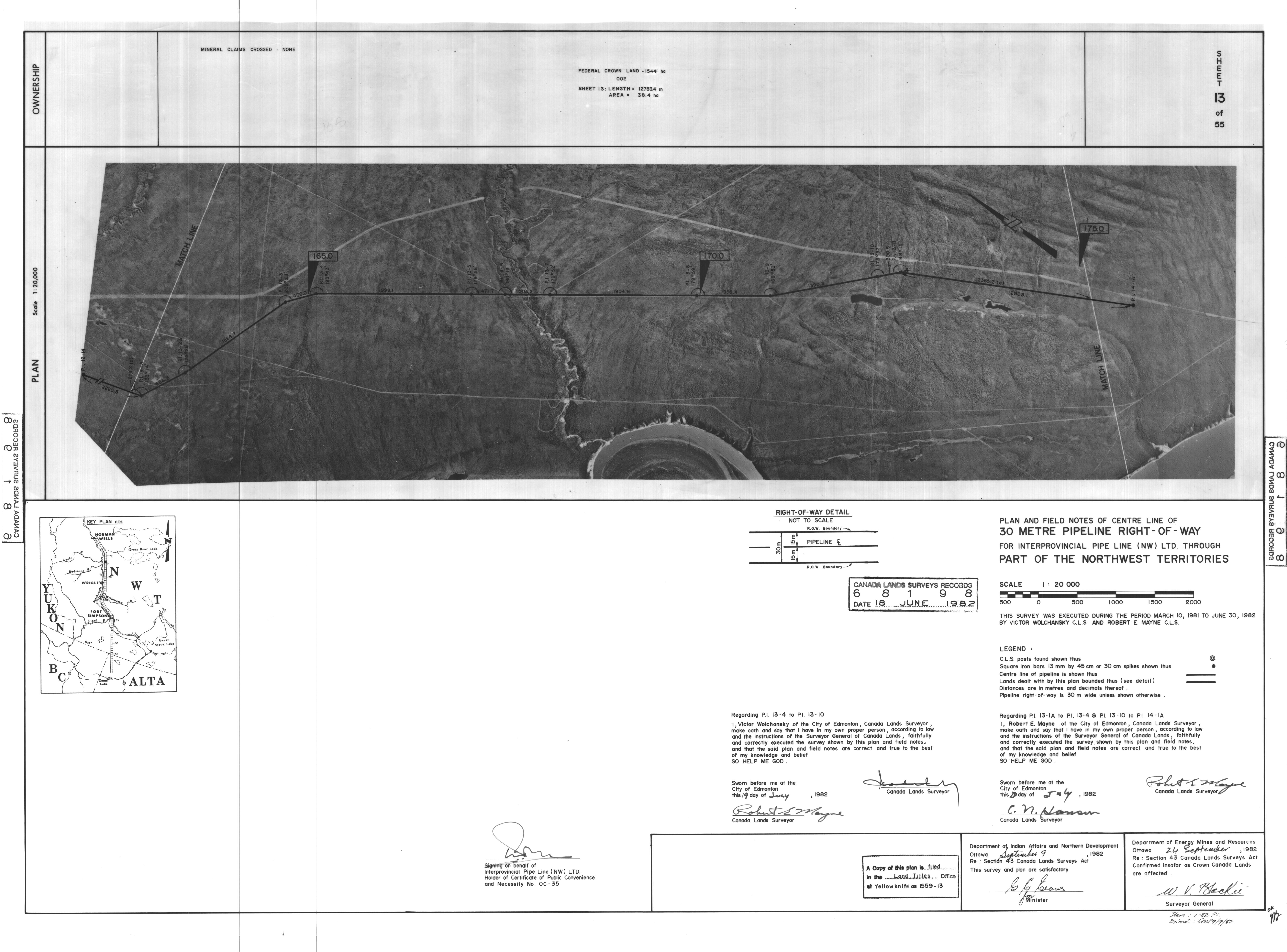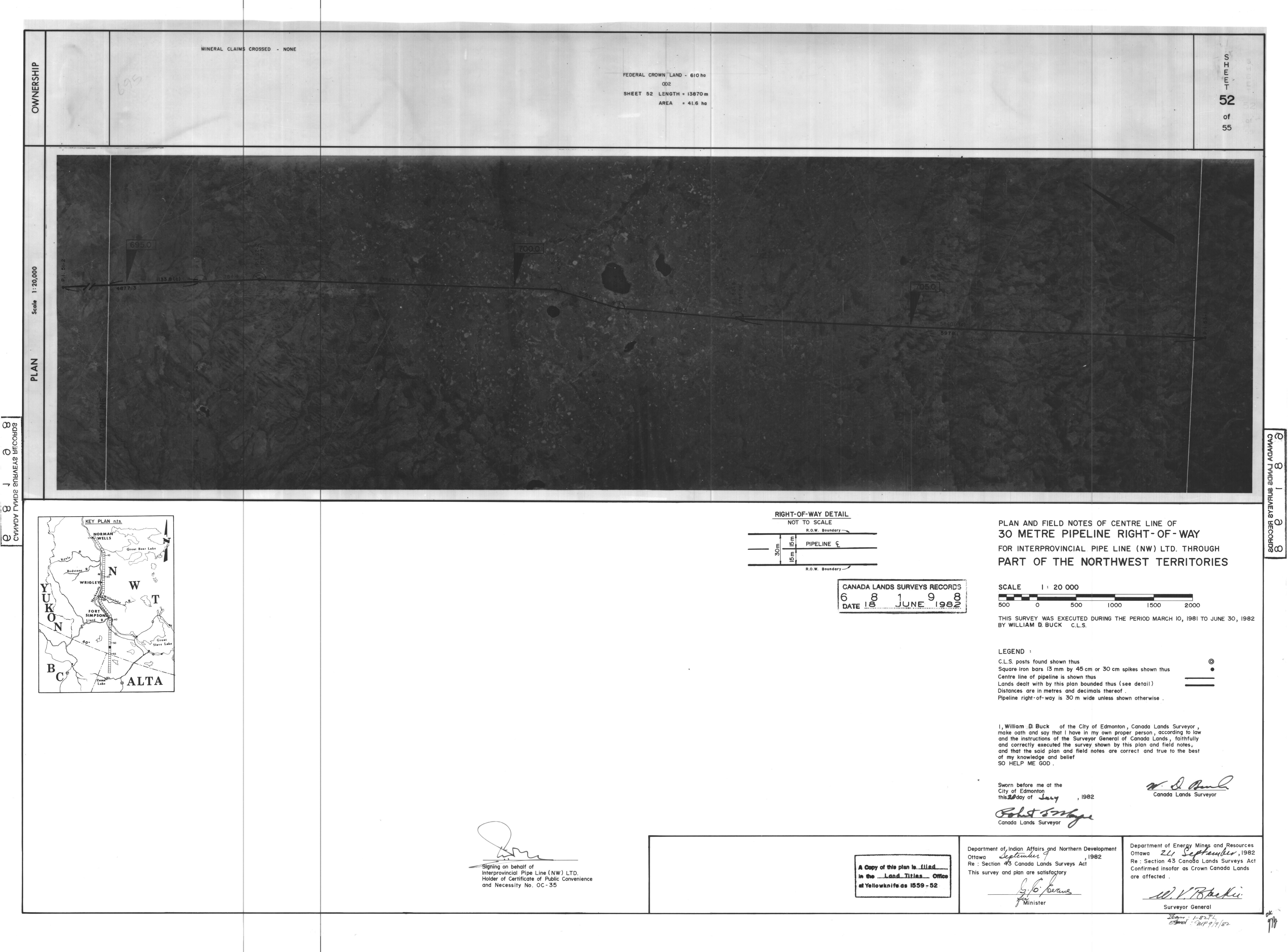 | Title | PLAN AND FIELD NOTES OF THE CENTRE LINE OF 30 METRE PIPELINE RIGHT-OF-WAY FOR INTERPROVINCIAL PIPE LINE (NW) LTD. THROUGH PART OF THE NORTHWEST TERRITORIES, 55 SHEETS (eng; CAN) |