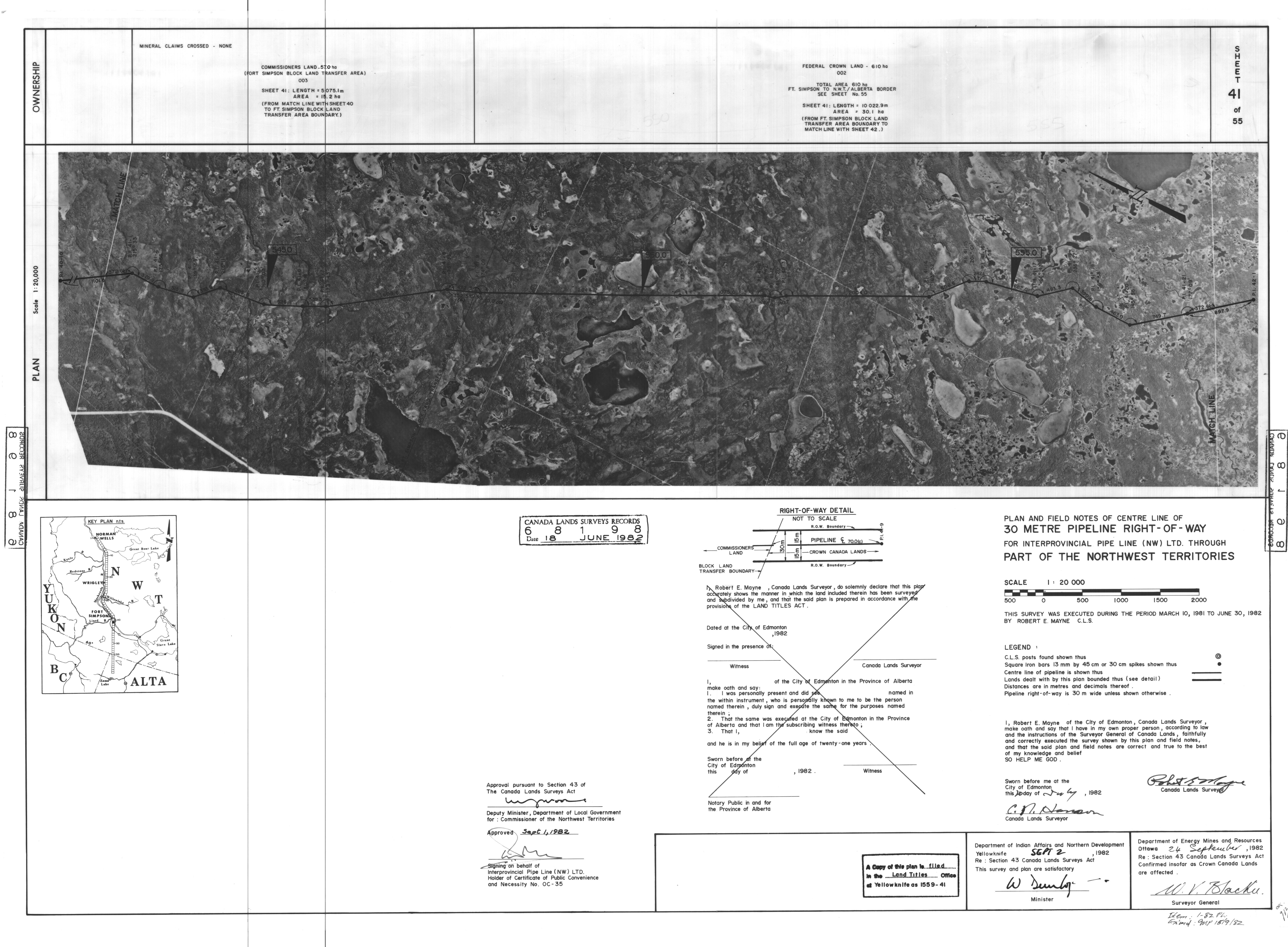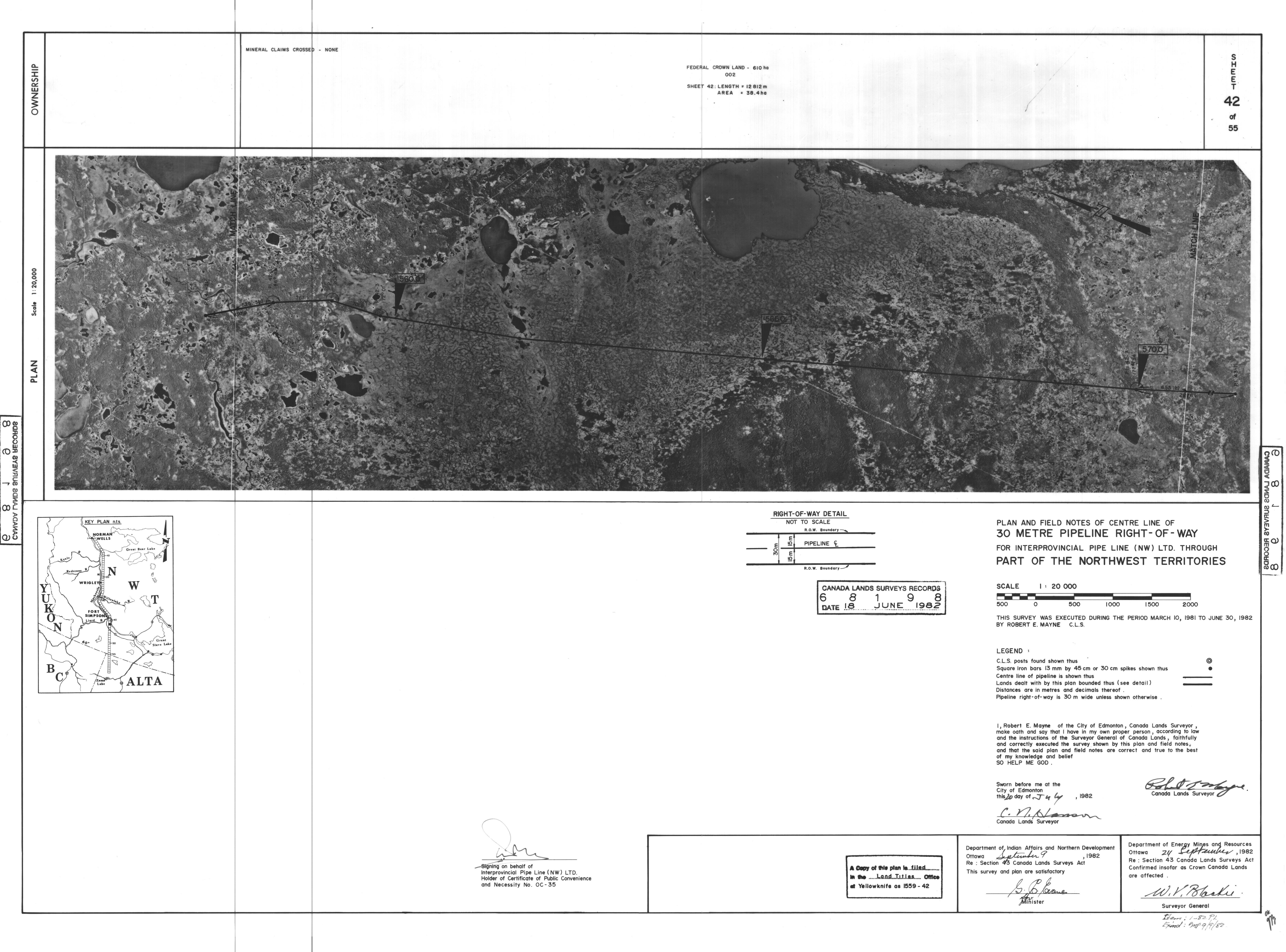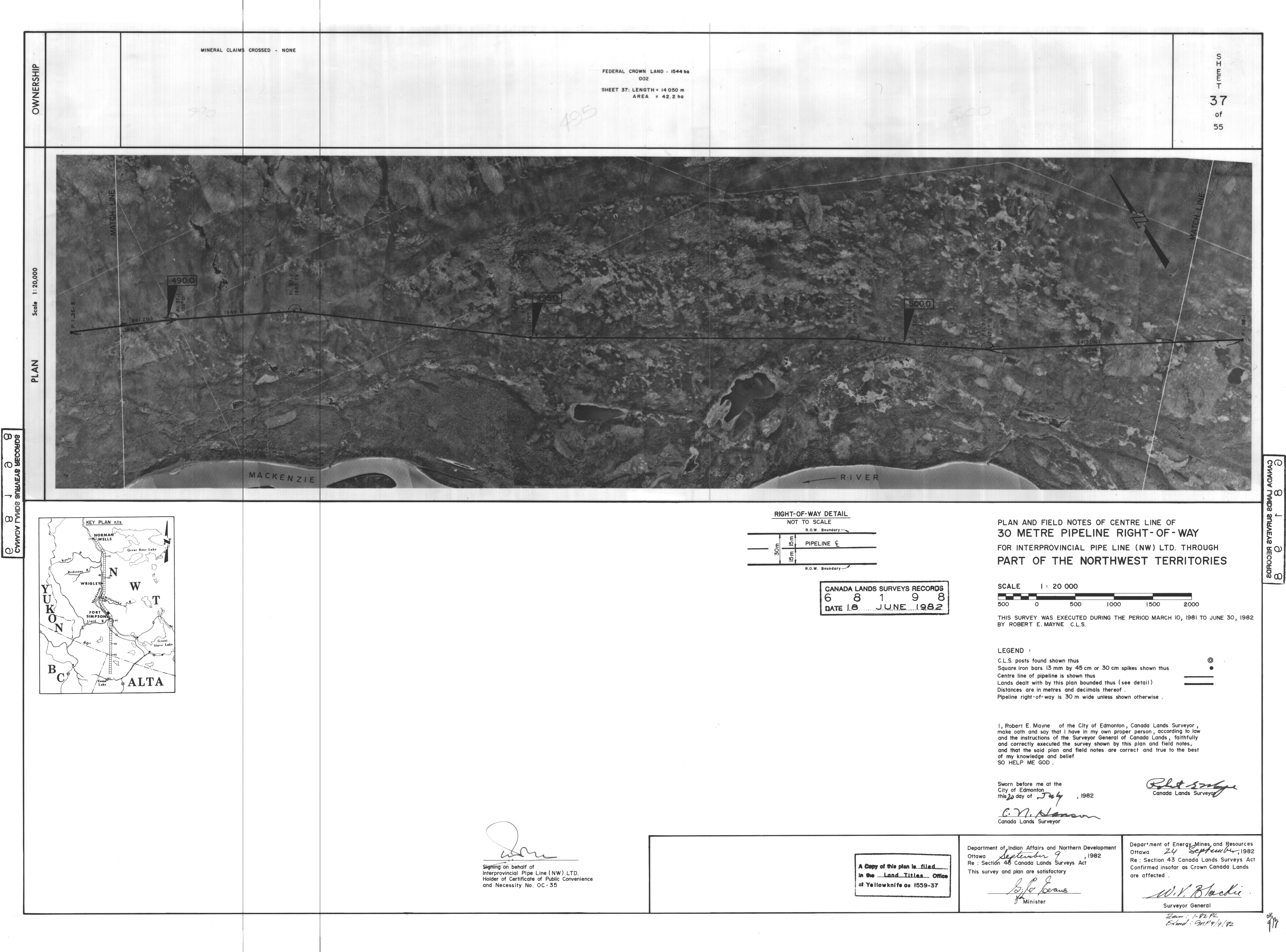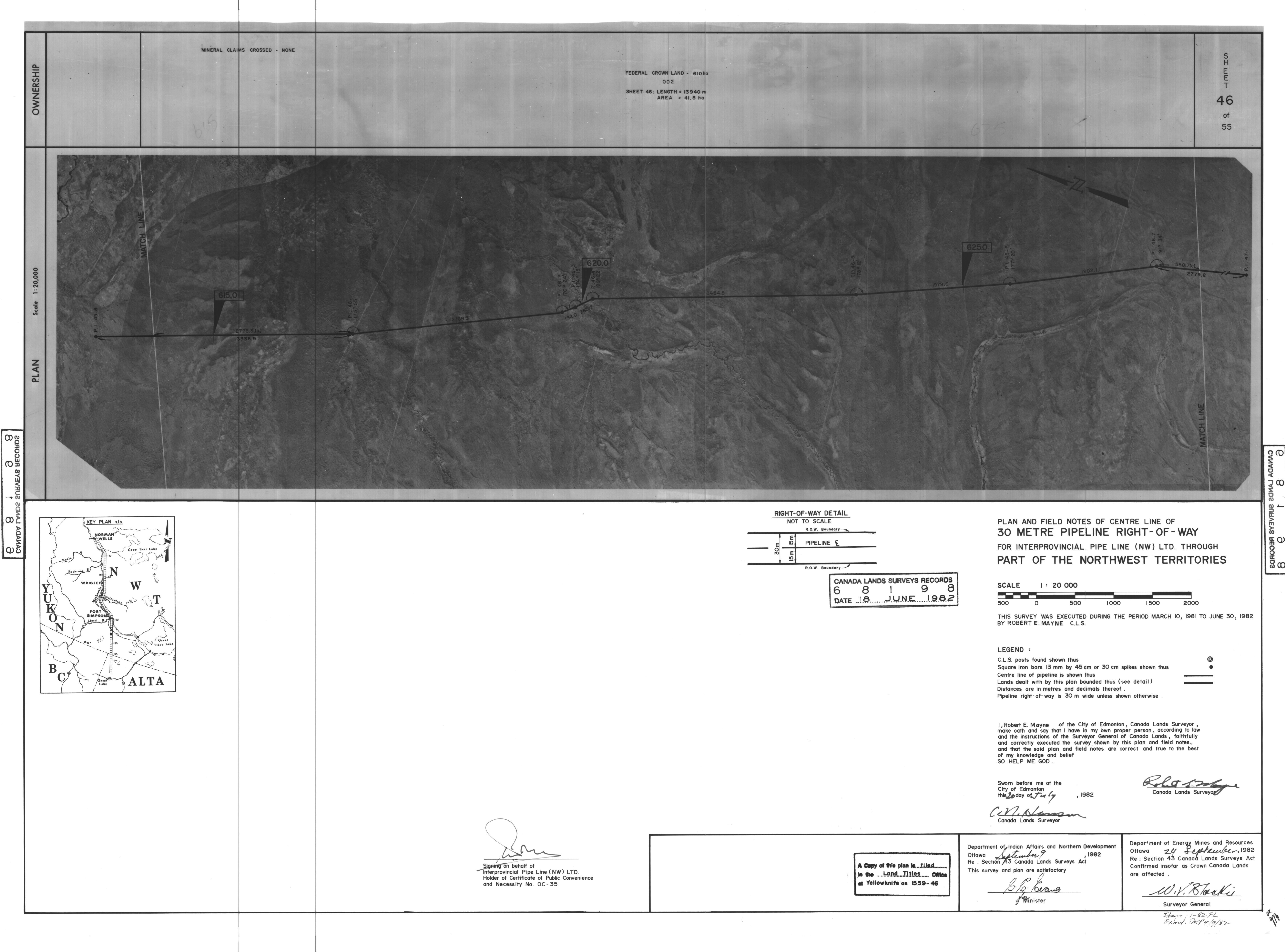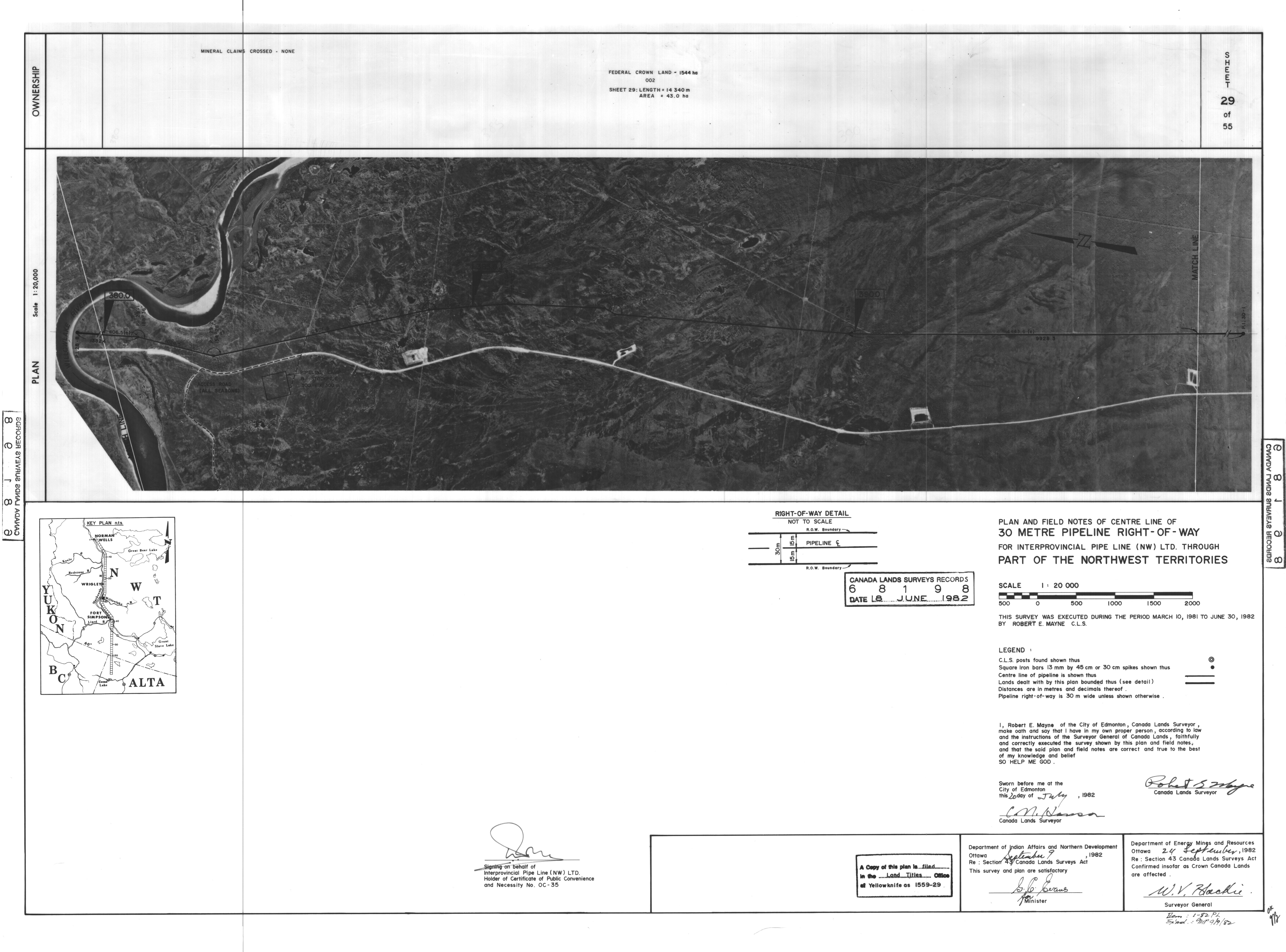 | Title | PLAN AND FIELD NOTES OF THE CENTRE LINE OF 30 METRE PIPELINE RIGHT-OF-WAY FOR INTERPROVINCIAL PIPE LINE (NW) LTD. THROUGH PART OF THE NORTHWEST TERRITORIES, 55 SHEETS (eng; CAN) |