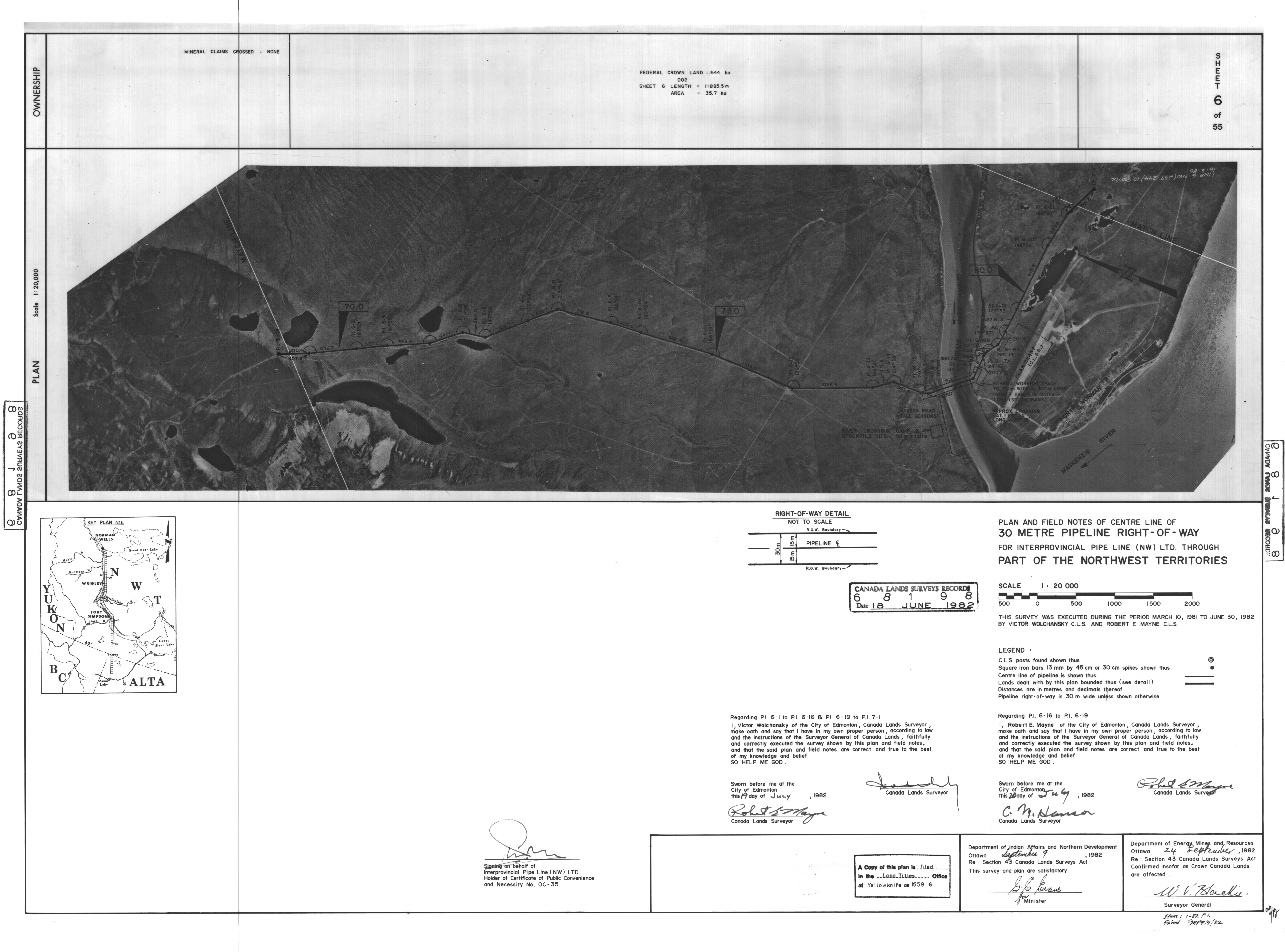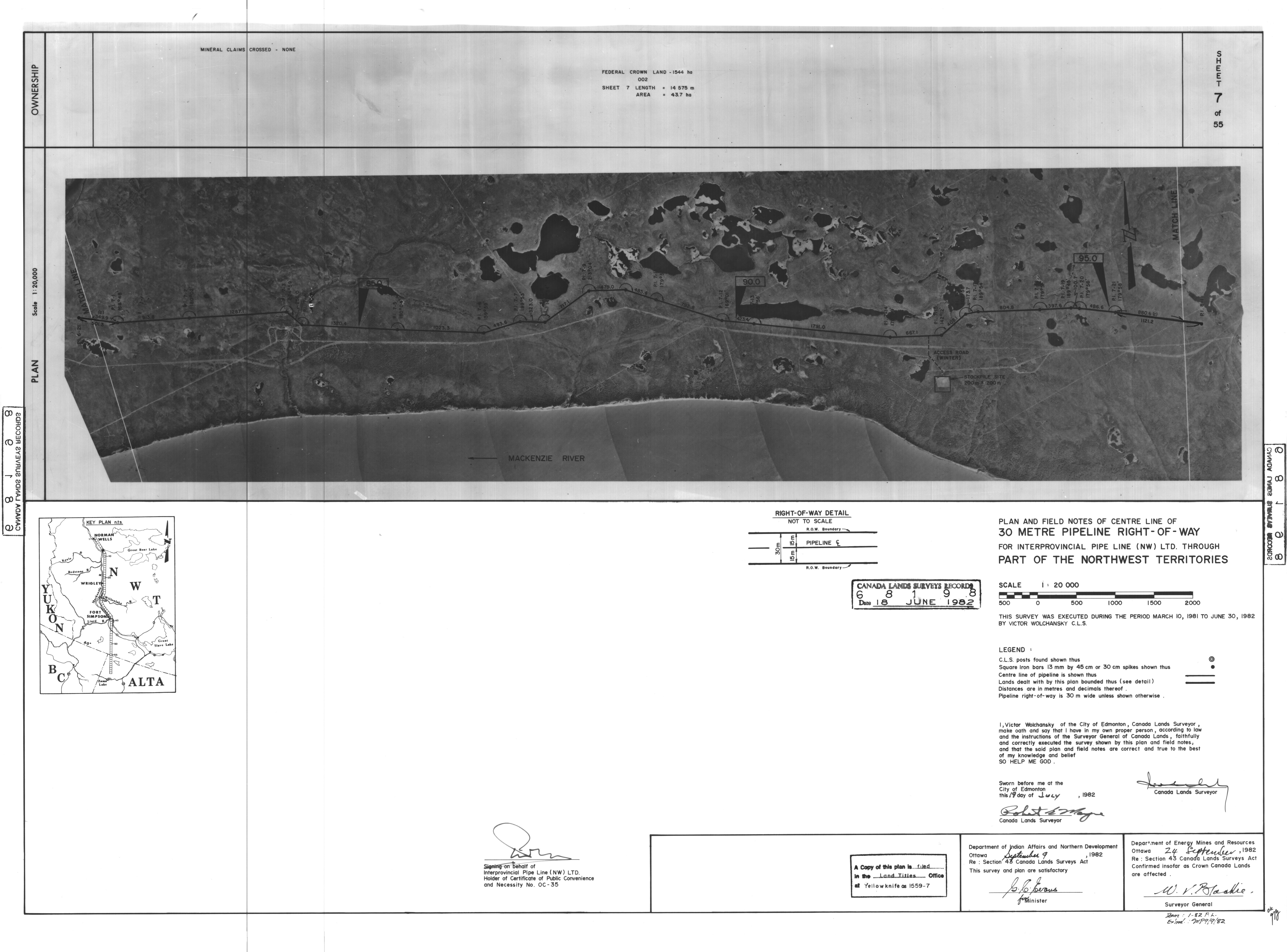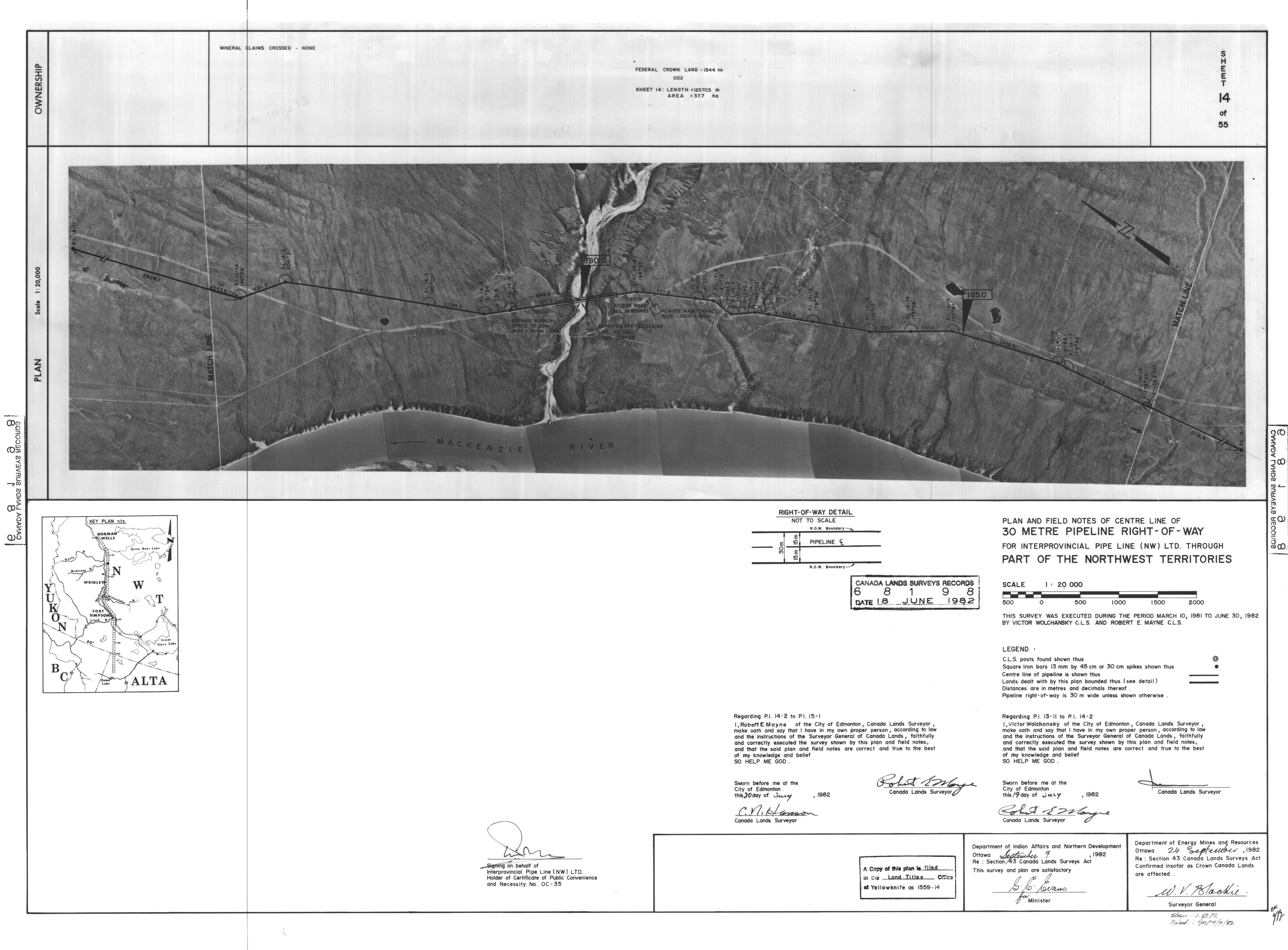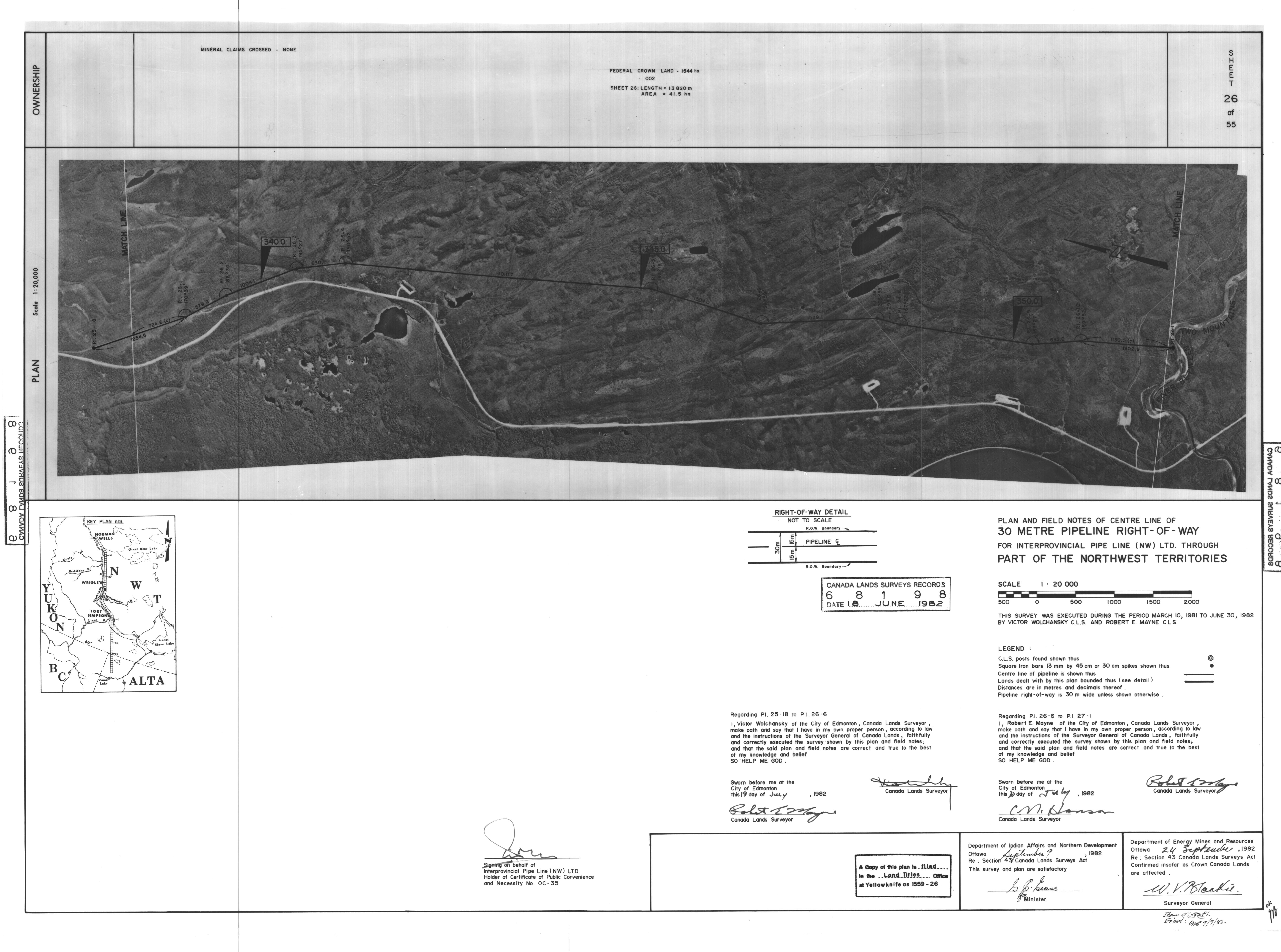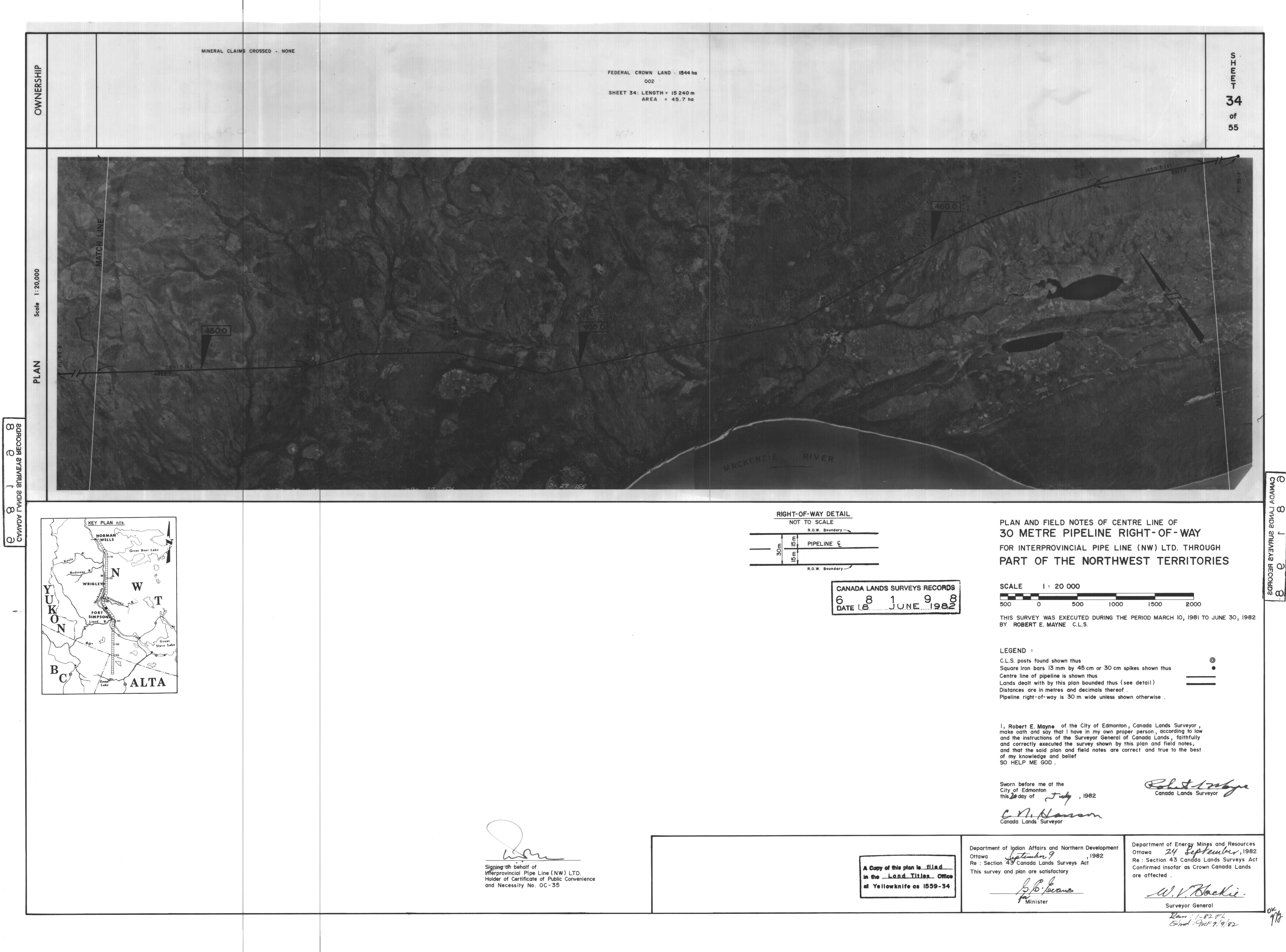 | Title | PLAN AND FIELD NOTES OF THE CENTRE LINE OF 30 METRE PIPELINE RIGHT-OF-WAY FOR INTERPROVINCIAL PIPE LINE (NW) LTD. THROUGH PART OF THE NORTHWEST TERRITORIES, 55 SHEETS (eng; CAN) |