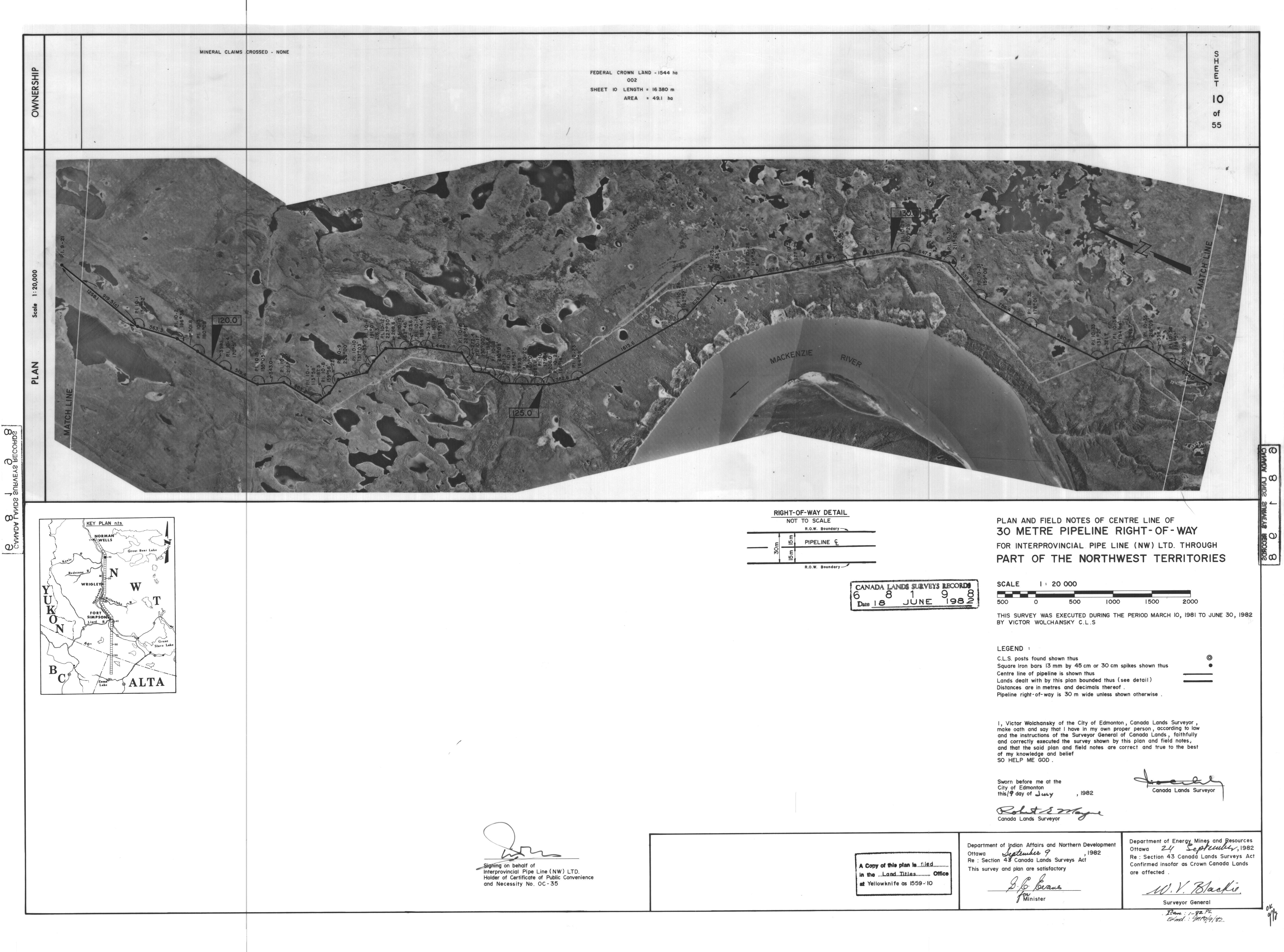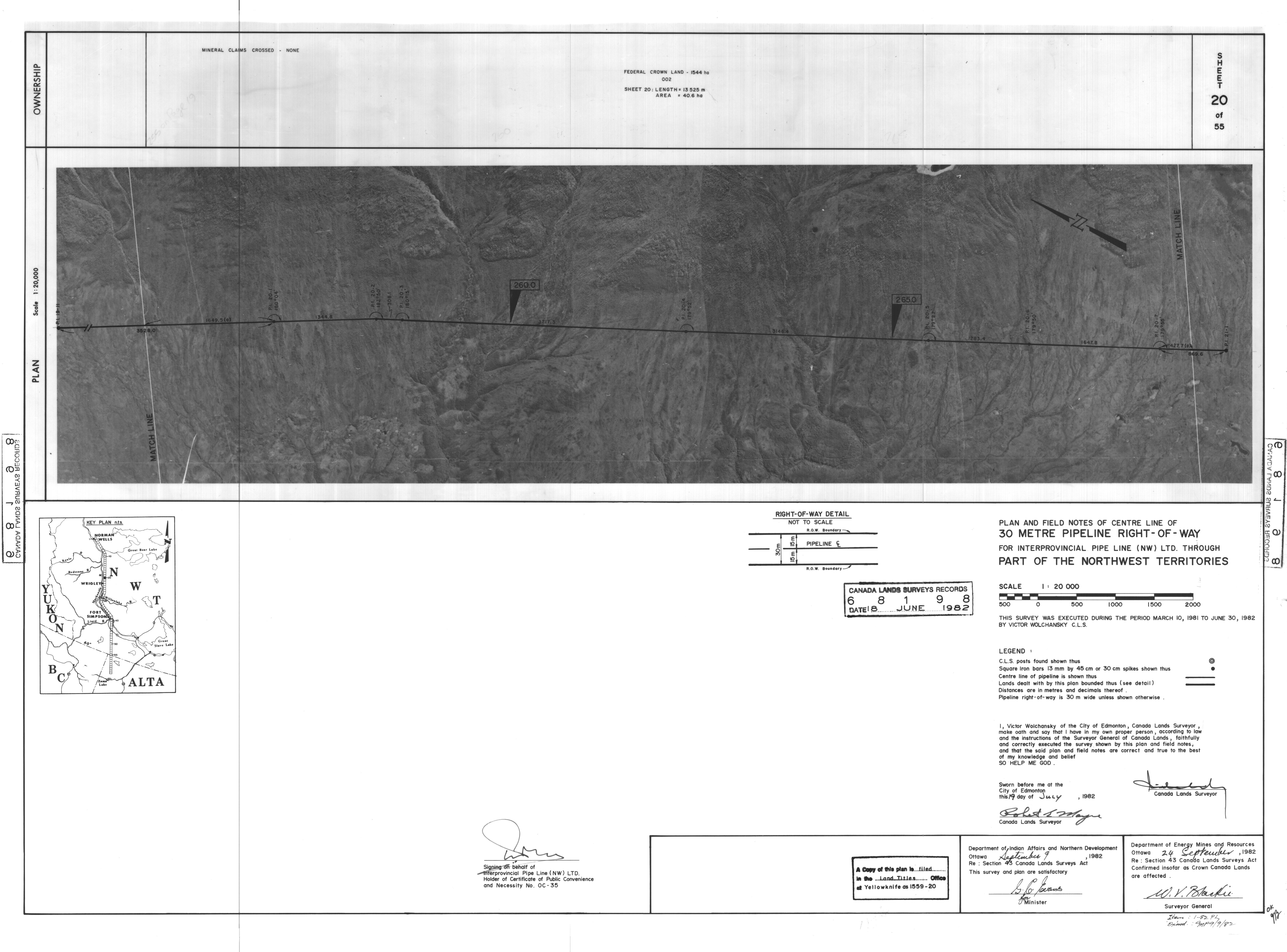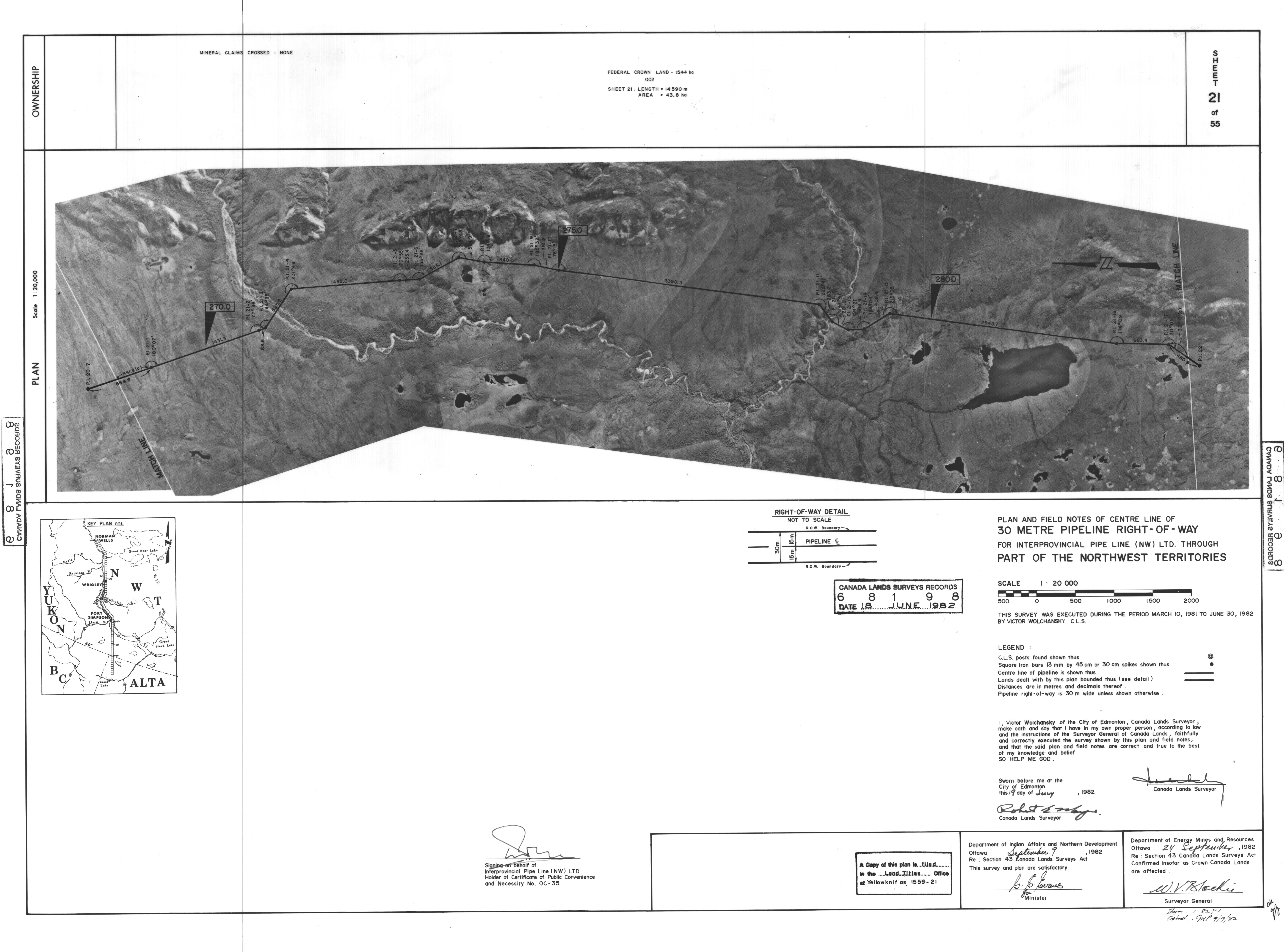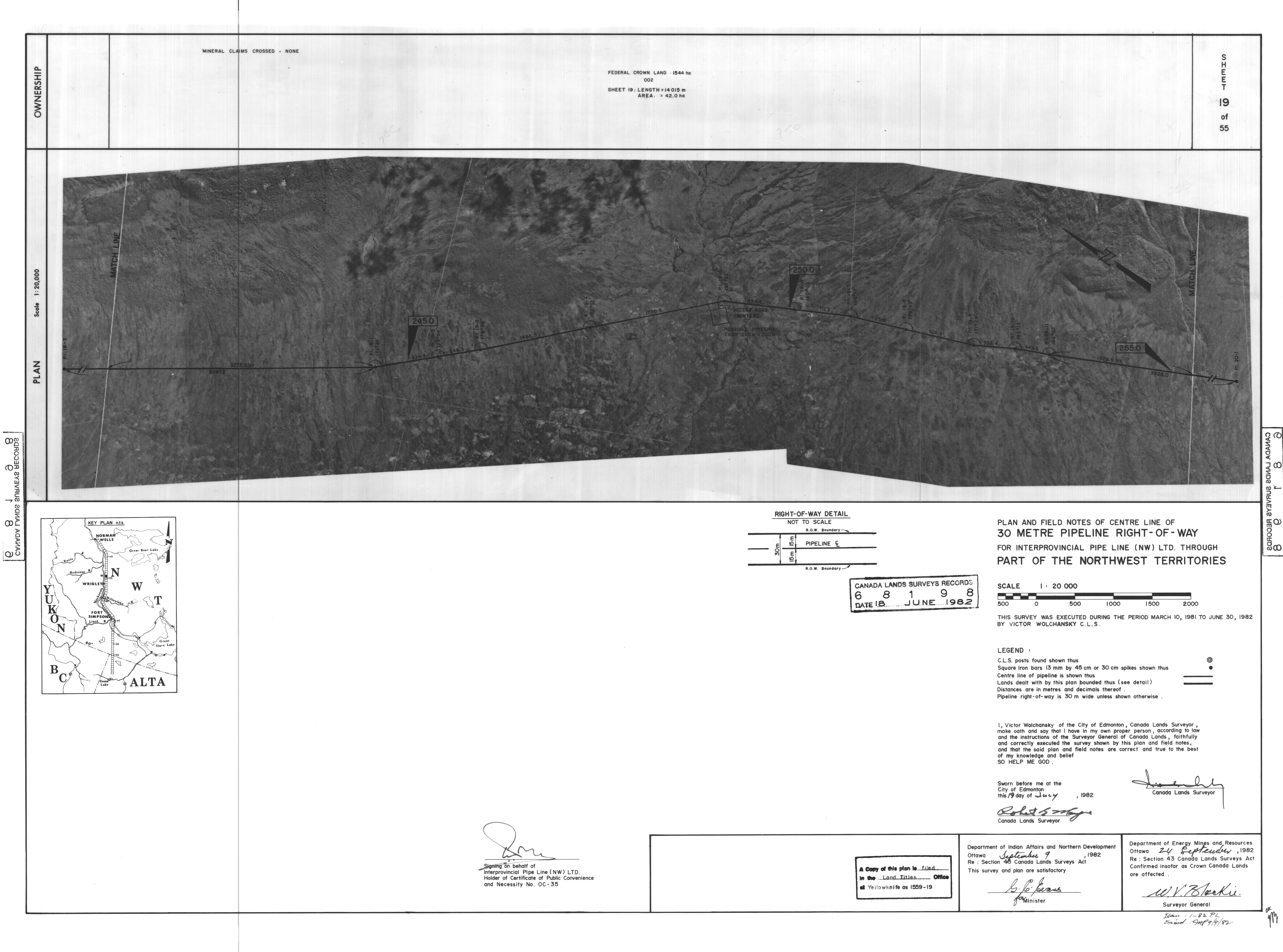 | Title | PLAN AND FIELD NOTES OF THE CENTRE LINE OF 30 METRE PIPELINE RIGHT-OF-WAY FOR INTERPROVINCIAL PIPE LINE (NW) LTD. THROUGH PART OF THE NORTHWEST TERRITORIES, 55 SHEETS (eng; CAN) |