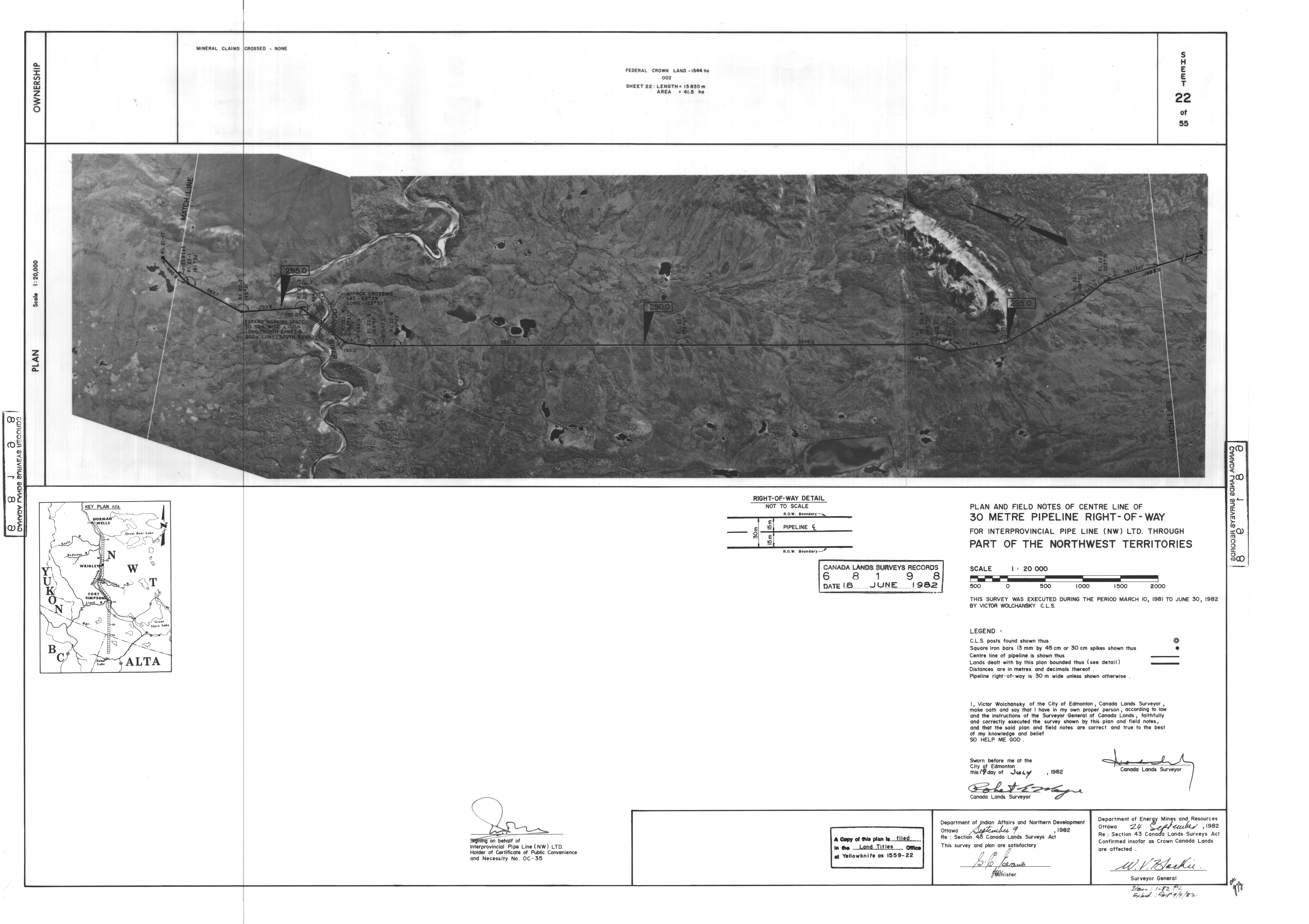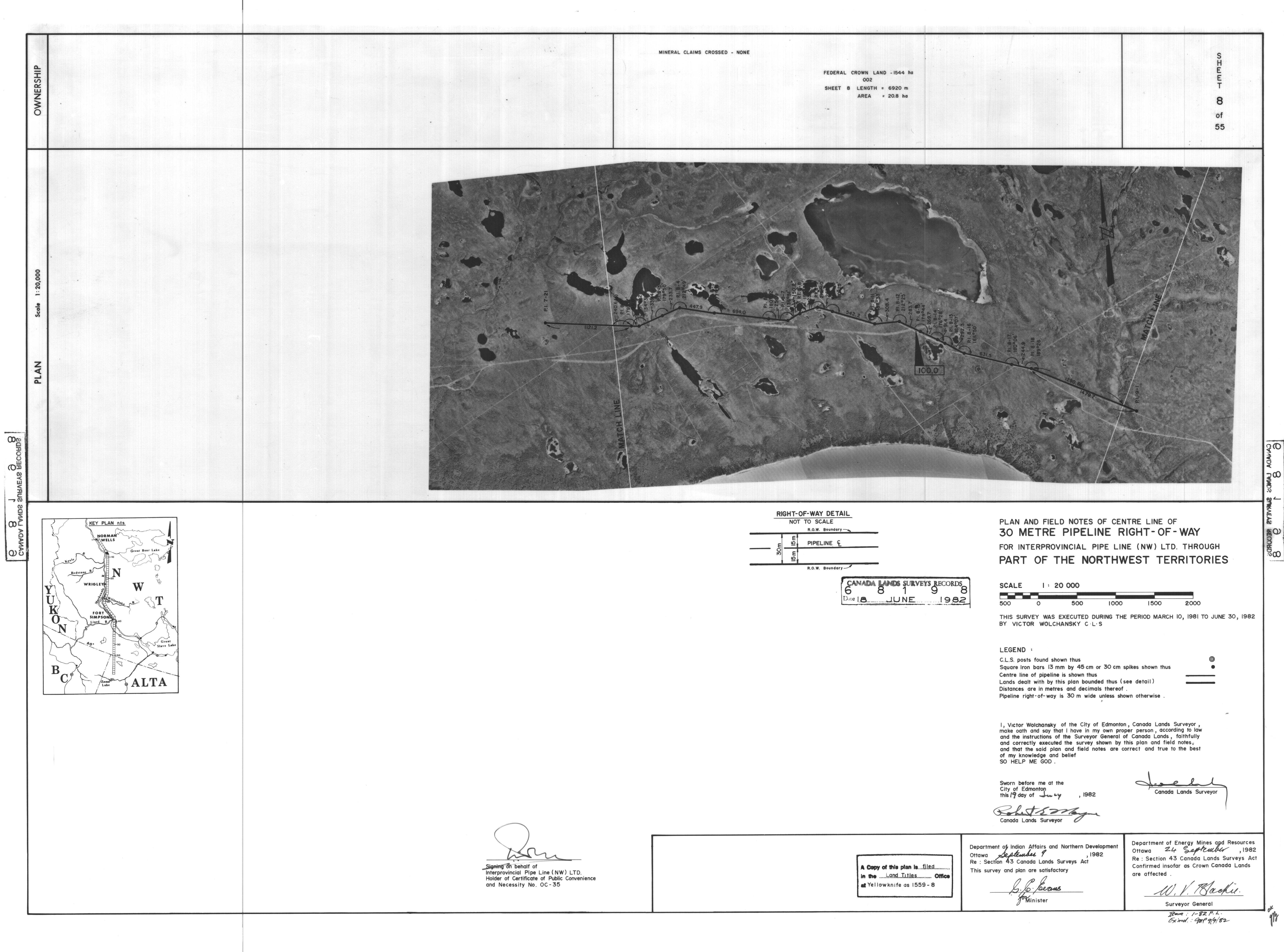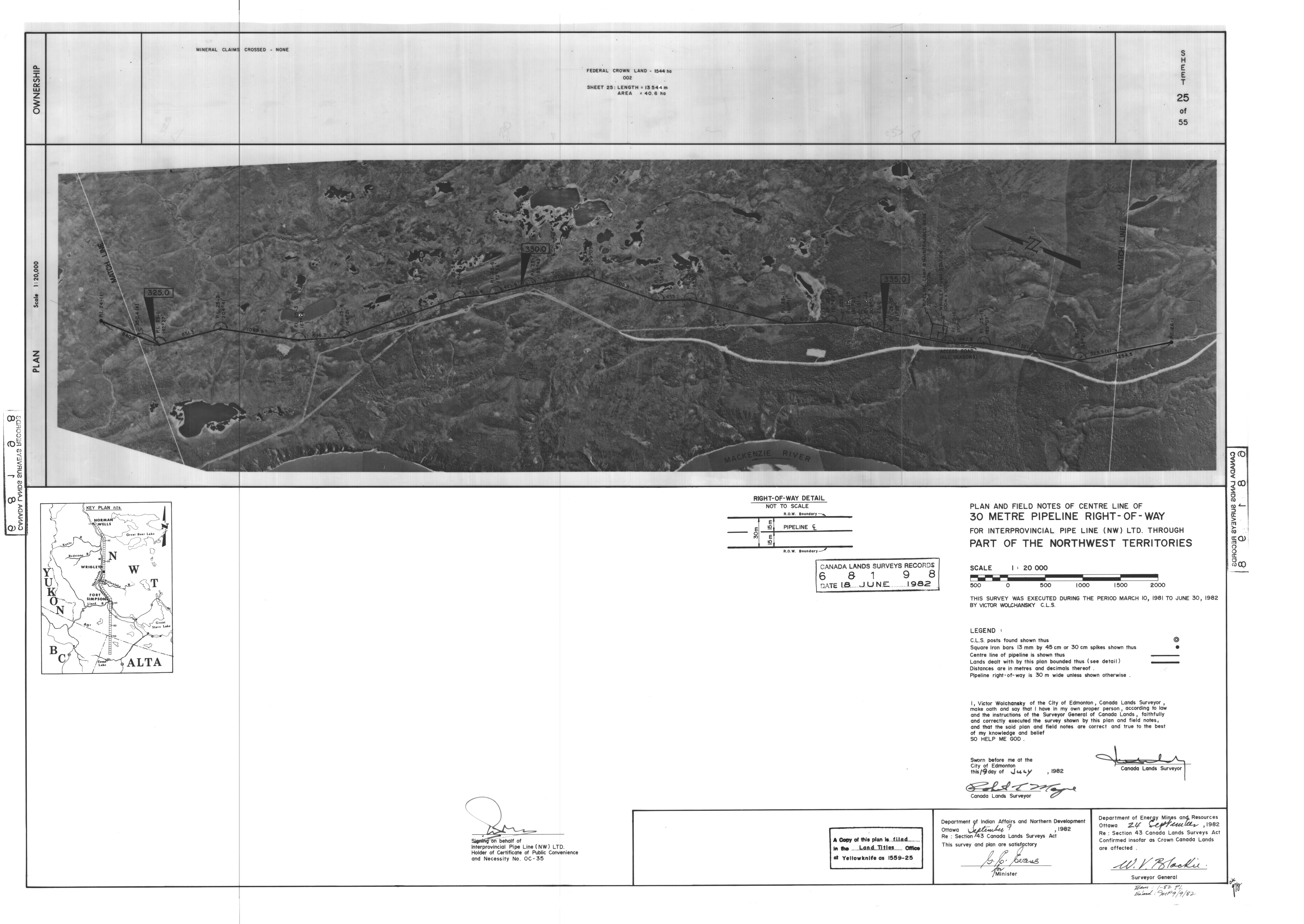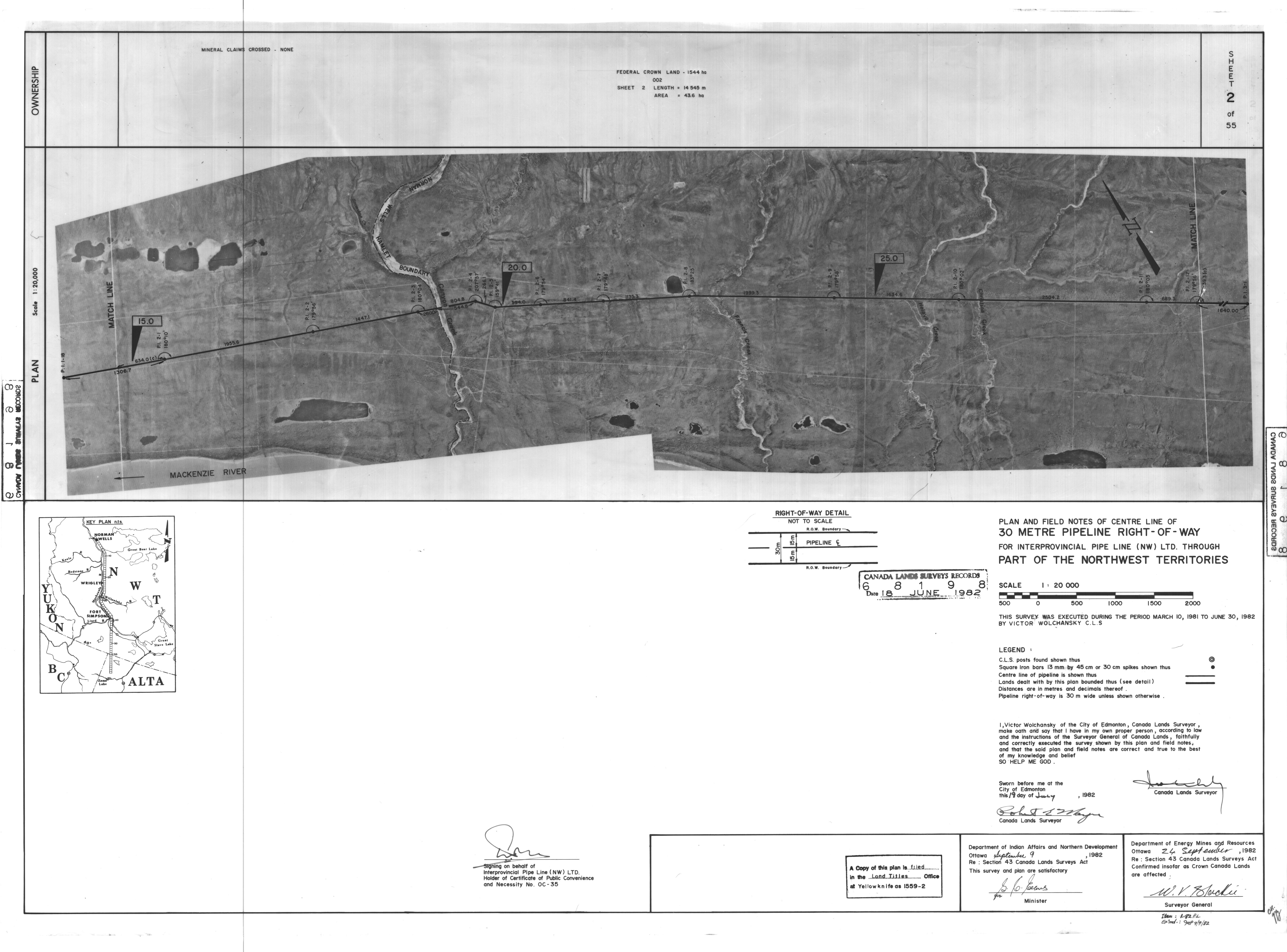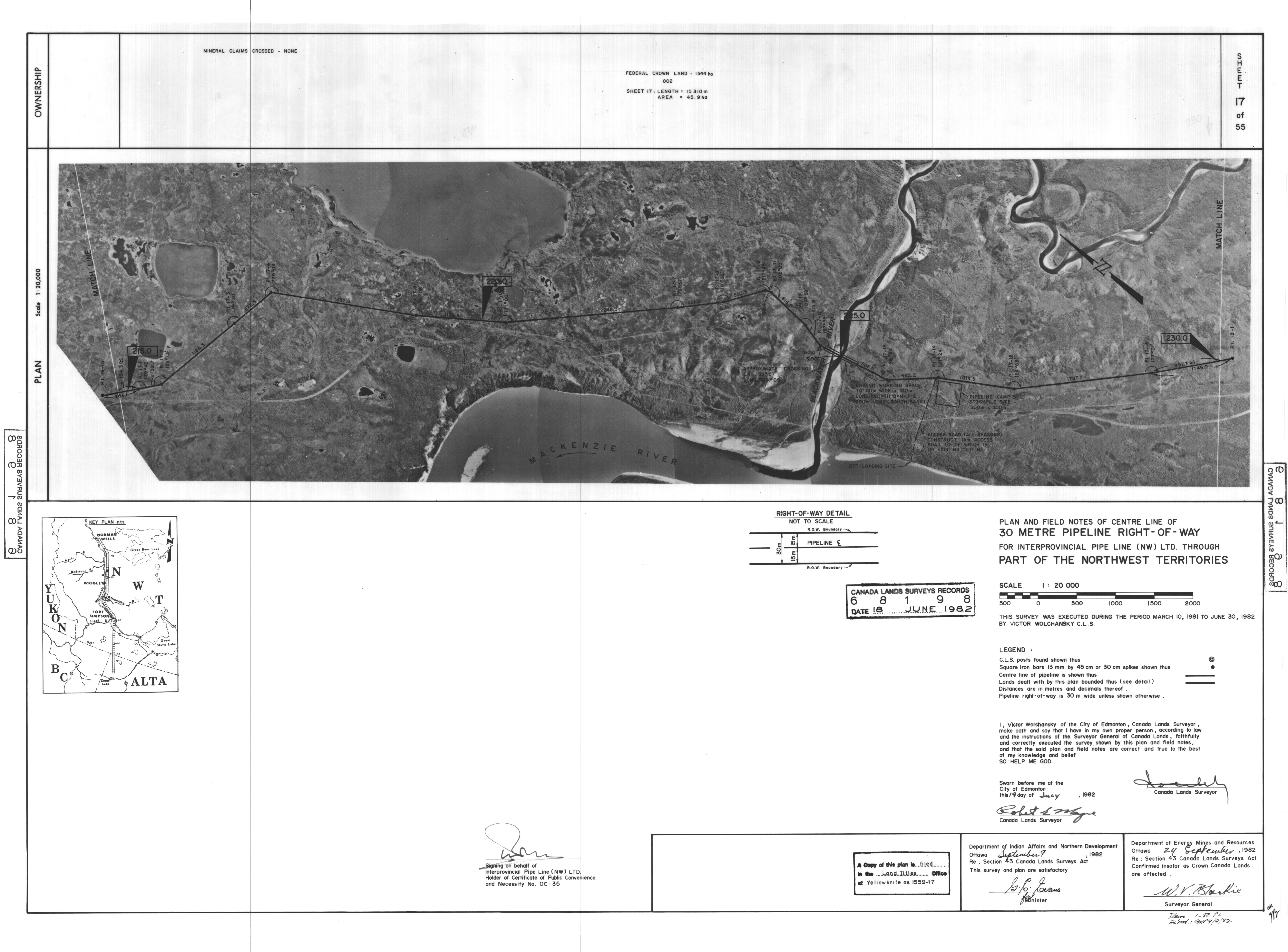 | Title | PLAN AND FIELD NOTES OF THE CENTRE LINE OF 30 METRE PIPELINE RIGHT-OF-WAY FOR INTERPROVINCIAL PIPE LINE (NW) LTD. THROUGH PART OF THE NORTHWEST TERRITORIES, 55 SHEETS (eng; CAN) |