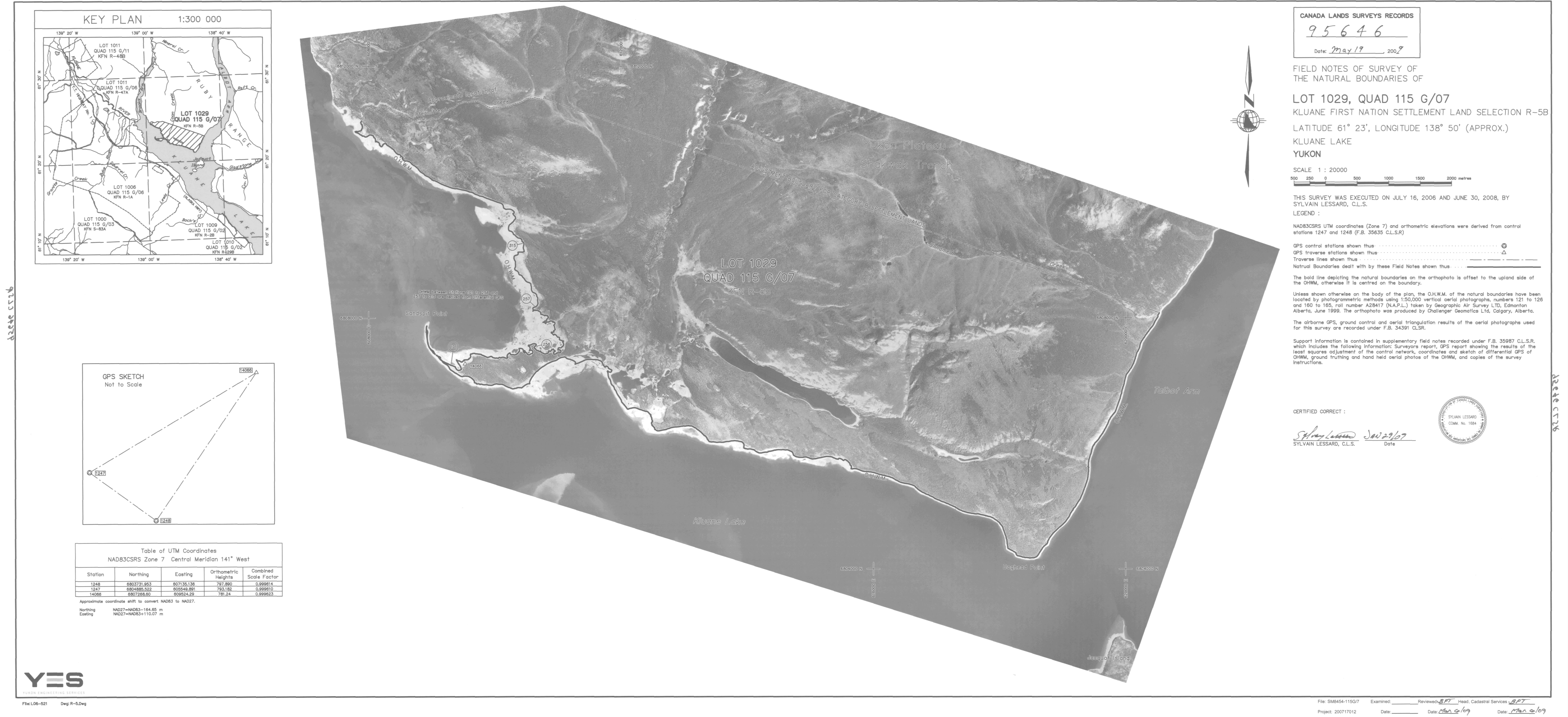 NATURAL BOUNDARIES OF LOT 1029 (KFN R-5B), QUAD 115 G/7, KLUANE LAKE (eng; CAN)